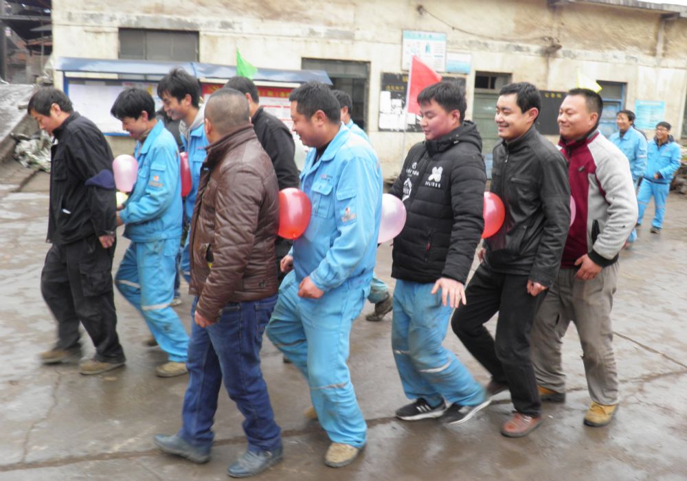 ——趣味小活動,團隊合力顯。元月6日中午,維修院子里彩旗飄揚,參賽隊員摩拳擦掌,車間舉辦的迎新年趣味競技活動鳴鑼開賽。車間主任兼黨支部書記李毅首先代表車間黨政工團發(fā)表了熱情洋溢的新年致辭,接著裁判宣讀了各項比賽規(guī)則,然后一場場與眾不同的趣味競技比賽正式開始。競賽項目有“齊心協(xié)力攻難關(guān)”“同心同向運氣球”“拔河比賽賽合力”“杯水成河賽水平”等。