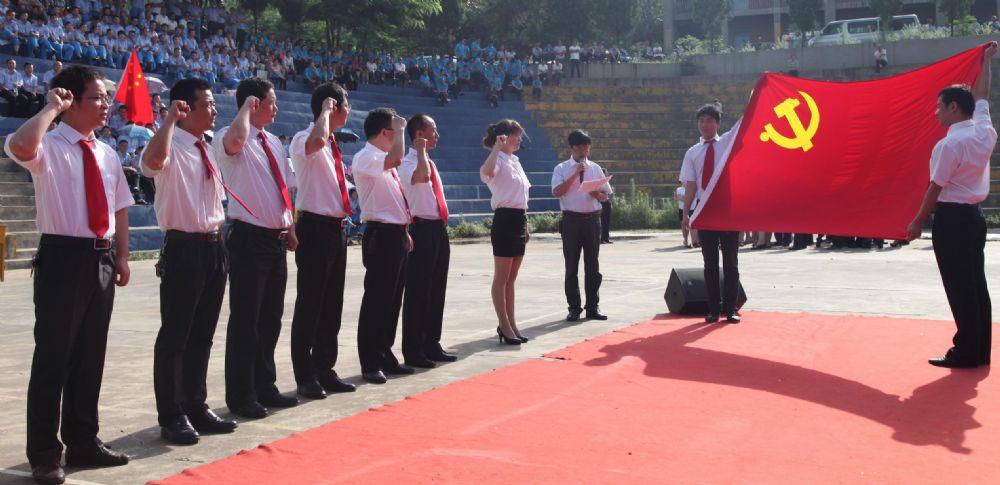 合唱比賽開(kāi)始前,公司黨委舉行了新黨員宣誓儀式,黨委組織部長(zhǎng)楊新宏領(lǐng)誓。在鮮紅的黨旗下,7名新發(fā)展黨員高舉右拳,以拳拳之心莊嚴(yán)宣誓,在鮮紅的黨旗下許下為共產(chǎn)主義事業(yè)奮斗終身的承諾。